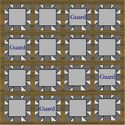 in column 1 the guard is placed on row 2, in column 2 the guard is placed on