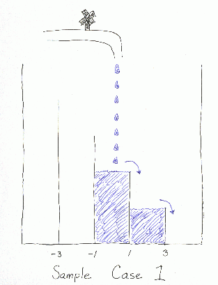 The faucet is above location x=0, and the dividers are located at x=-1, -3,