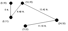 This problem considers a ``linear" network in which the computers are chained together so that each is connected to exactly two others except for the two computers on the ends of the chain which are connected to only one other computer. A picture is shown below. Here the computers are the black dots and their locations in the network are identified by planar coordinates (relative to a coordinate system not shown in the picture).